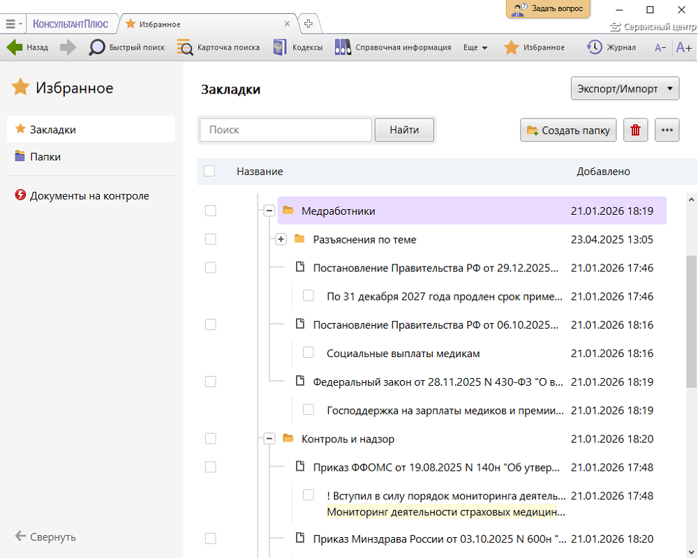 — Подборка представляет папки и закладки по заданной теме в оболочке КонсультантПлюс.
