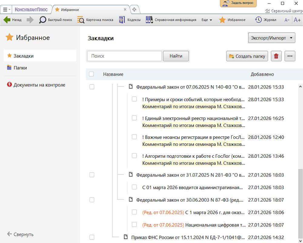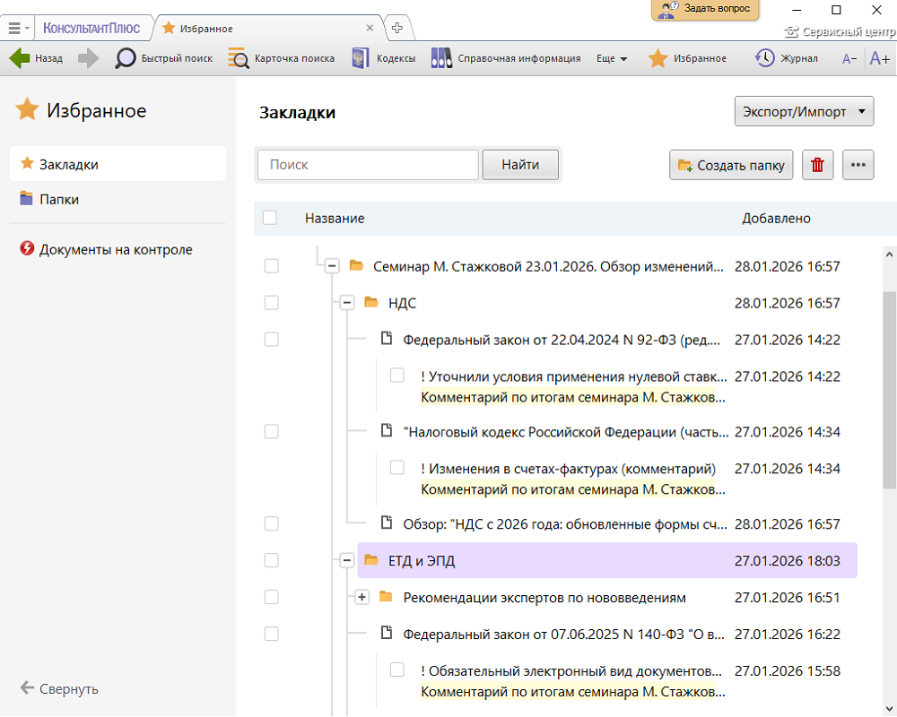 — Подборка представляет папки и закладки по заданной теме в оболочке КонсультантПлюс.