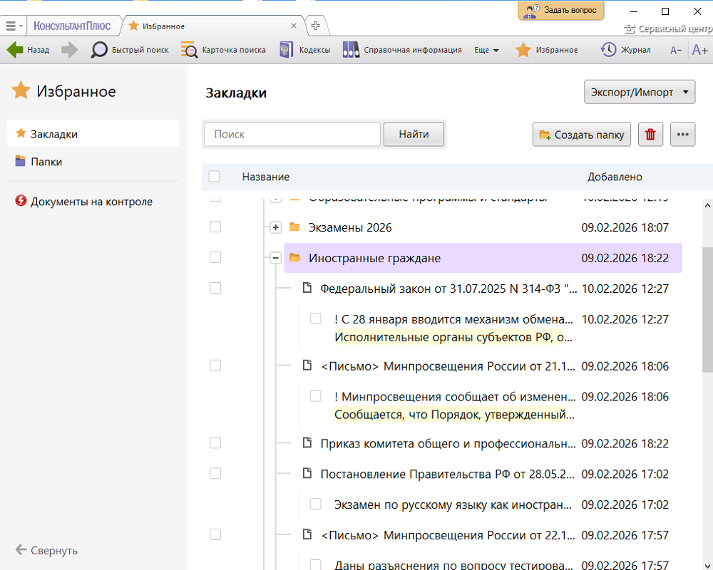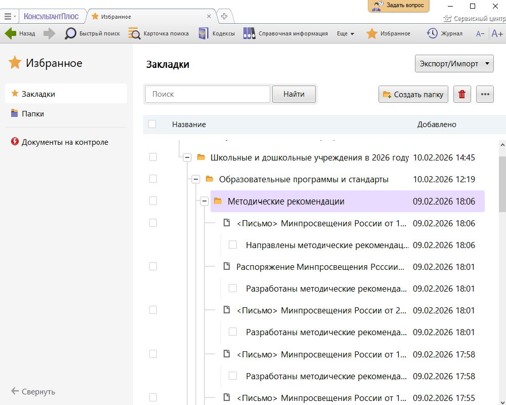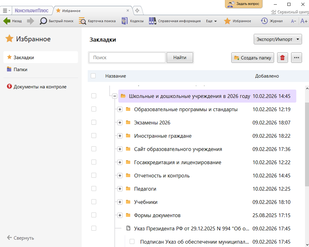— Подборка представляет папки и закладки по заданной теме в оболочке КонсультантПлюс.